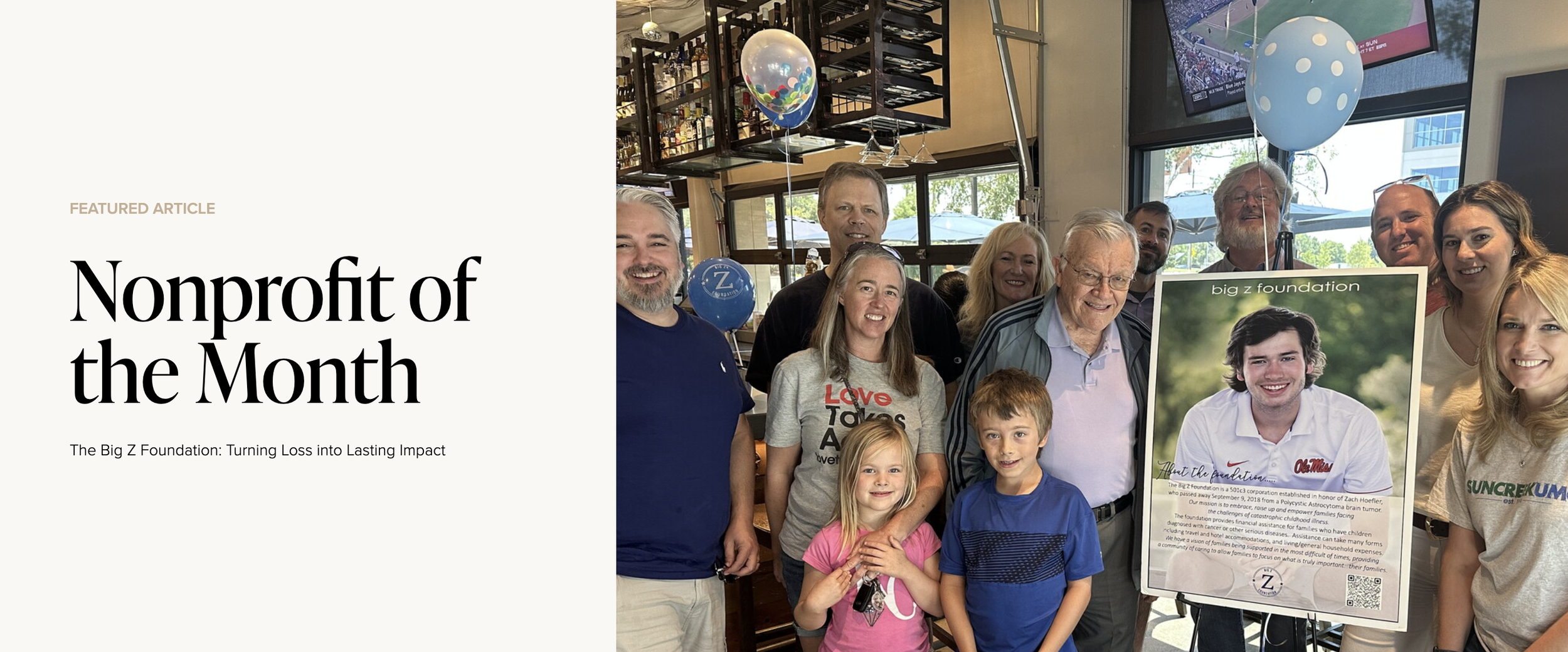 Your support reflects a genuine commitment to giving back and creating positive, lasting impact. We are truly grateful for your partnership, trust, and care, and for standing alongside the Big Z Foundation in such a meaningful and generous way.